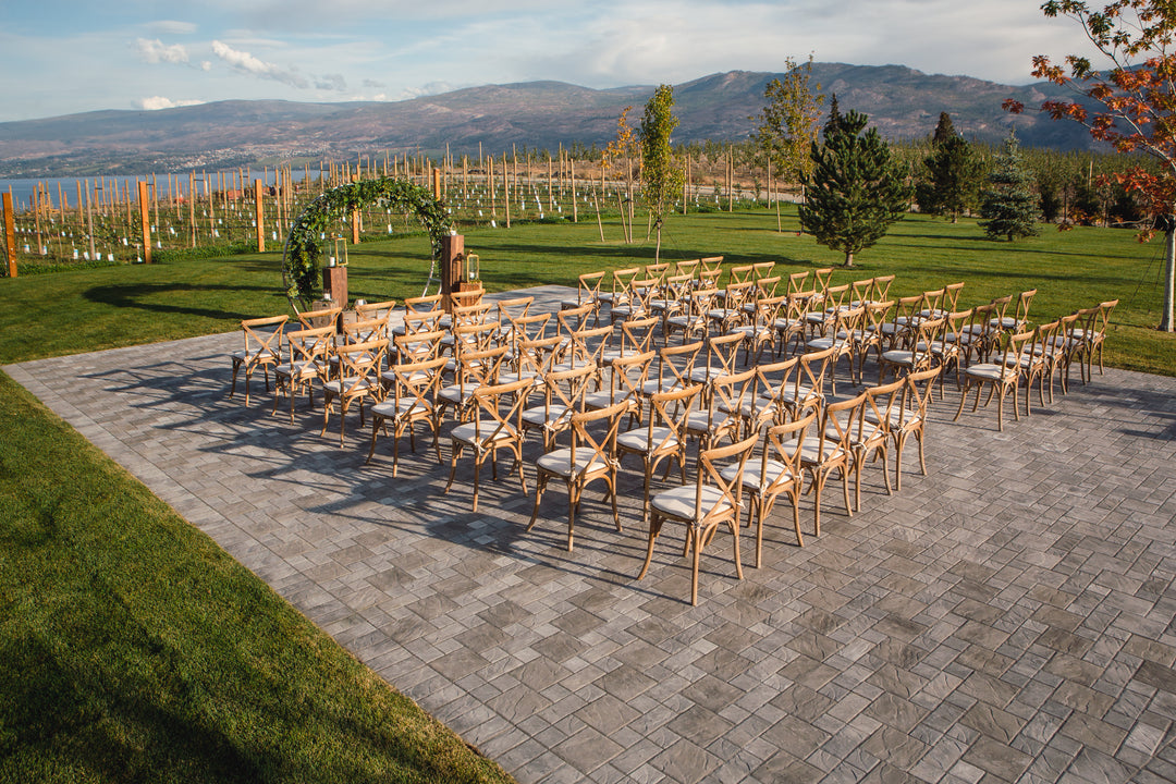 The stone patio offers a picturesque space for ceremonies, cocktail hours, or socializing. With views of the orchard and lake, it’s an ideal location to enhance your event's atmosphere and create lasting memories.